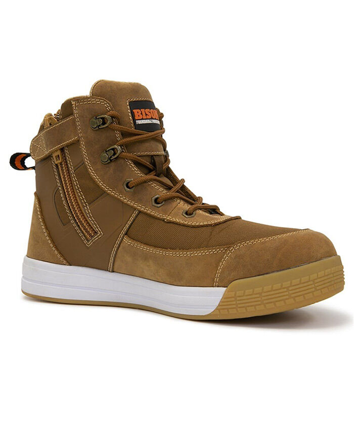 DUNE ZIP SIDE LACE UP HIGH TOP SAFETY SHOE - BROWN